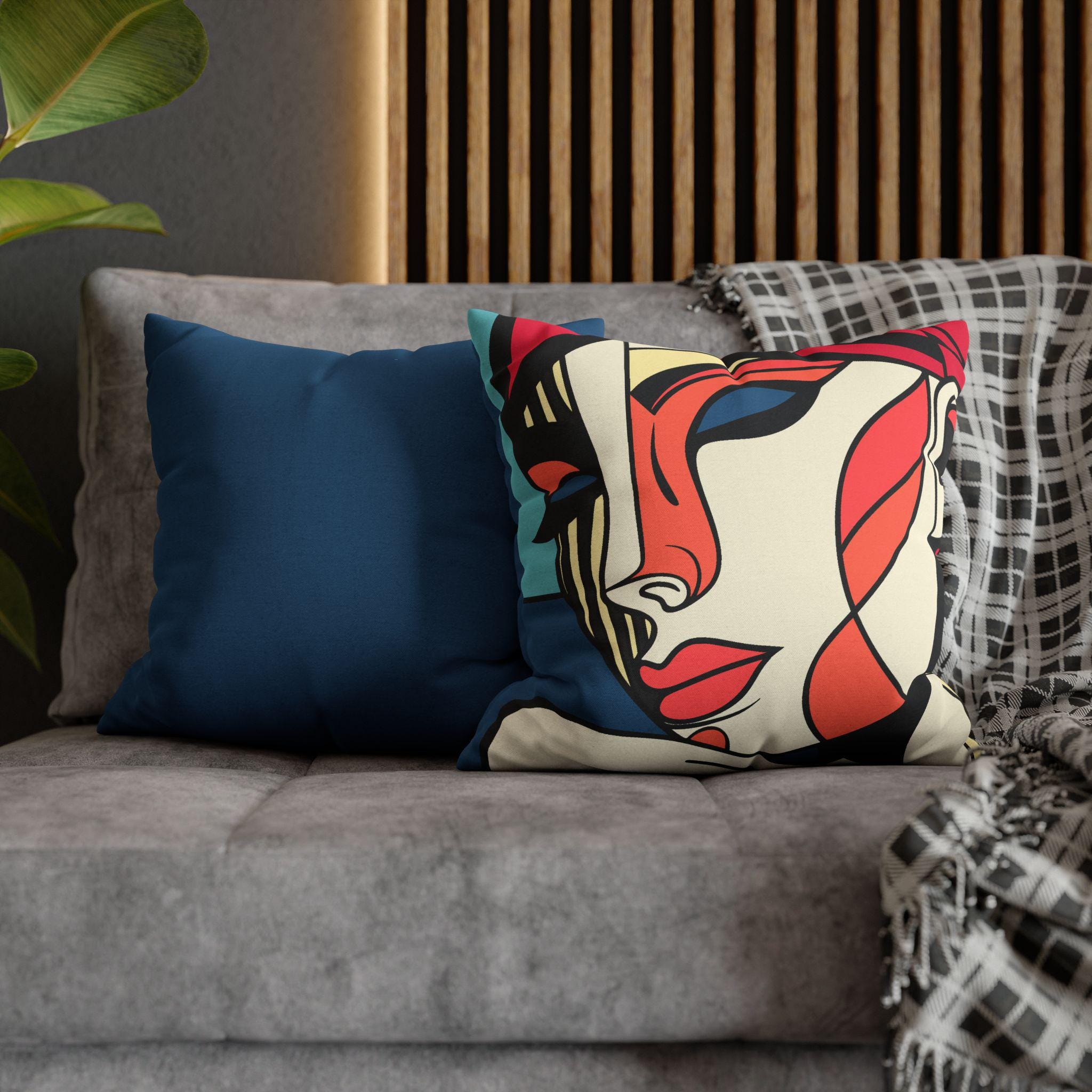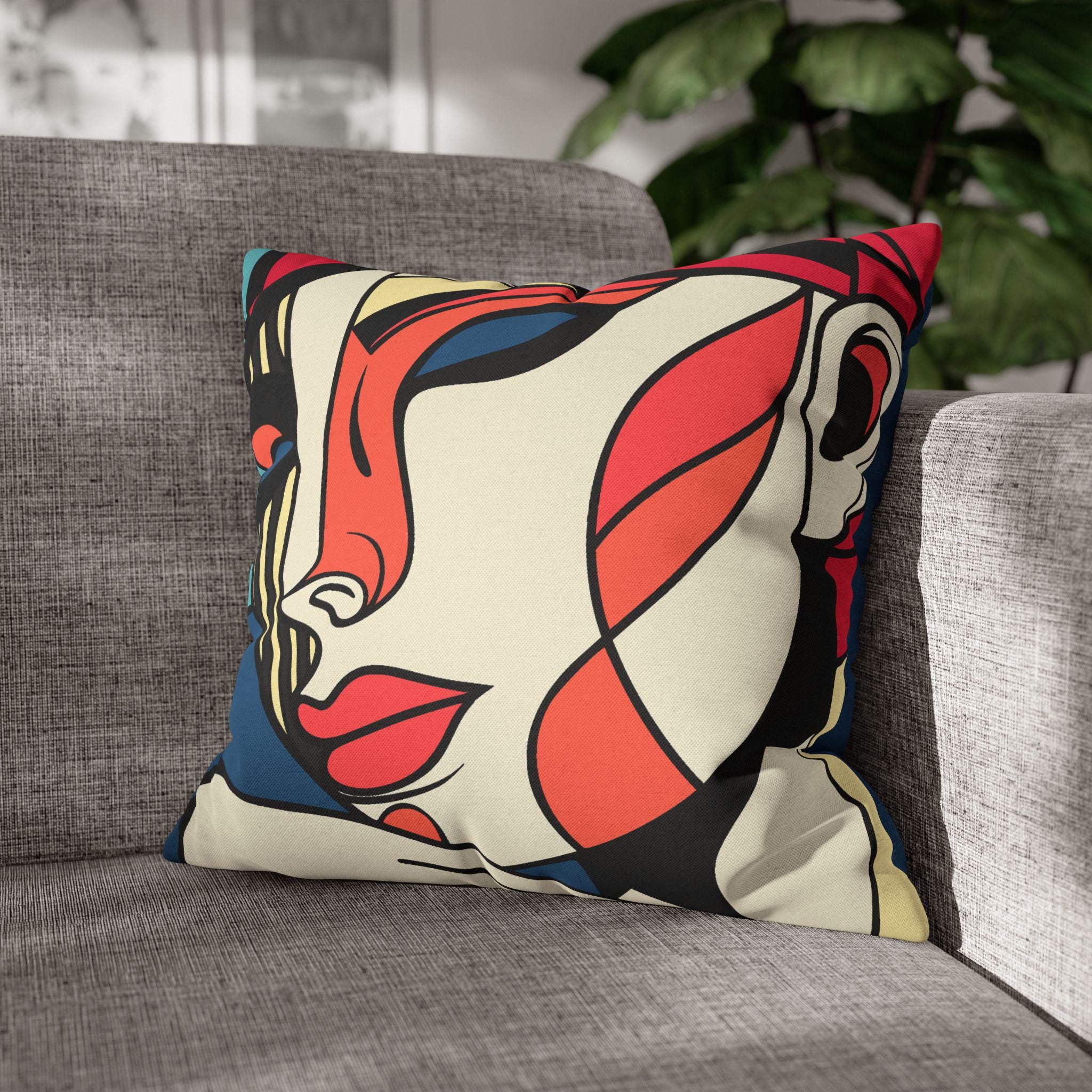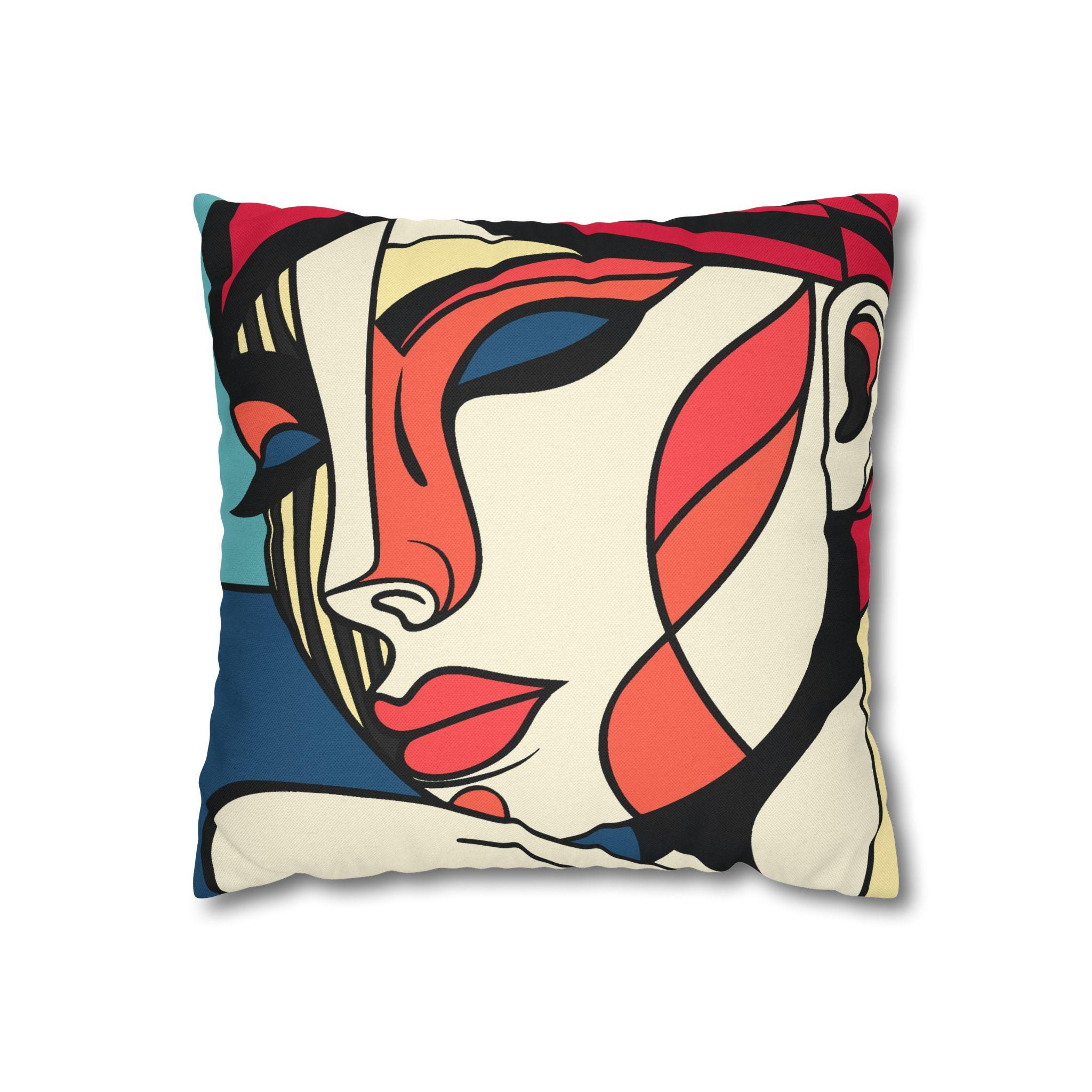 Elegant and modern square pillowcase featuring an abstract woman's face in stylish colors. This pillowcase adds a sophisticated touch to any room and is perfect for those who appreciate unique and artistic decor. Ideal for gifting during birthdays, anniversaries, or housewarmings.